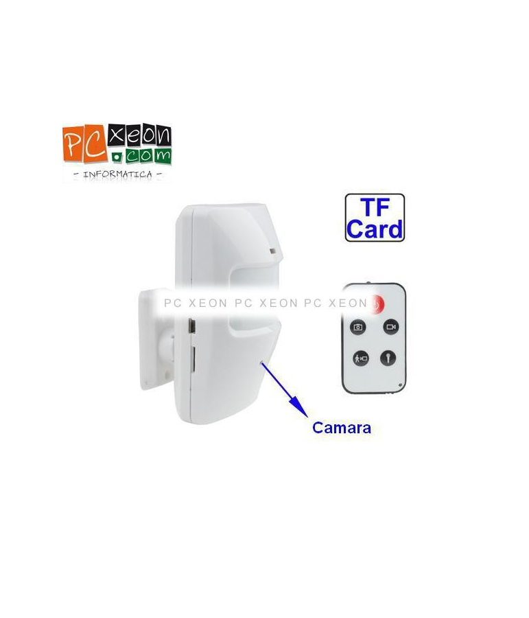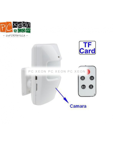 Camara espia oculta en detector de movimientos con control remoto . Puede tomar fotos , hacer video y grabacion de Audio . Soporta una micro sd TF de hasta 16Gb . Formato del video : 640x180 en AVI .