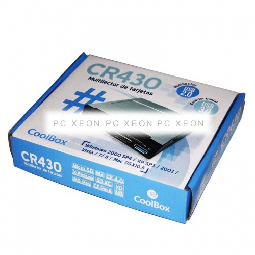 Si tu equipo cuenta con una placa base con conector interno USB3.0 y tu torre no dispone de dicho conector frontal, el multilector CoolBox CR-430 es una solución perfecta para mejorarlo. Además de incluir todas las características como multilector del modelo CoolBox CR-400, a partir del cual se ha desarrollado (lectura de prácticamente todas las tarjetas del mercado, incluidas microSD, microSDHC y Memory Stick Micro M2), el CR-430 cuenta con un conector USB3.0 frontal (en lugar del USB2.0 del CR-400). A nivel interno, el CR-430 precisa de 2 conectores internos libres en la placa base: Uno USB2.0 para las funciones de multilector y uno USB3.0 para que el puerto frontal USB3.0 funcione. Necesitaremos además una bahía de 3.5" libre, con aceso frontal libre para alojar el multilector.