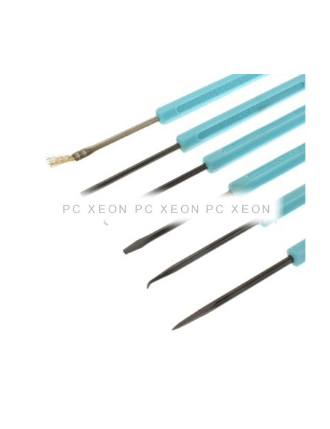 Kit de 6 herramientas para la ayuda en la soldadura y desoldadura de componentes electronicos.